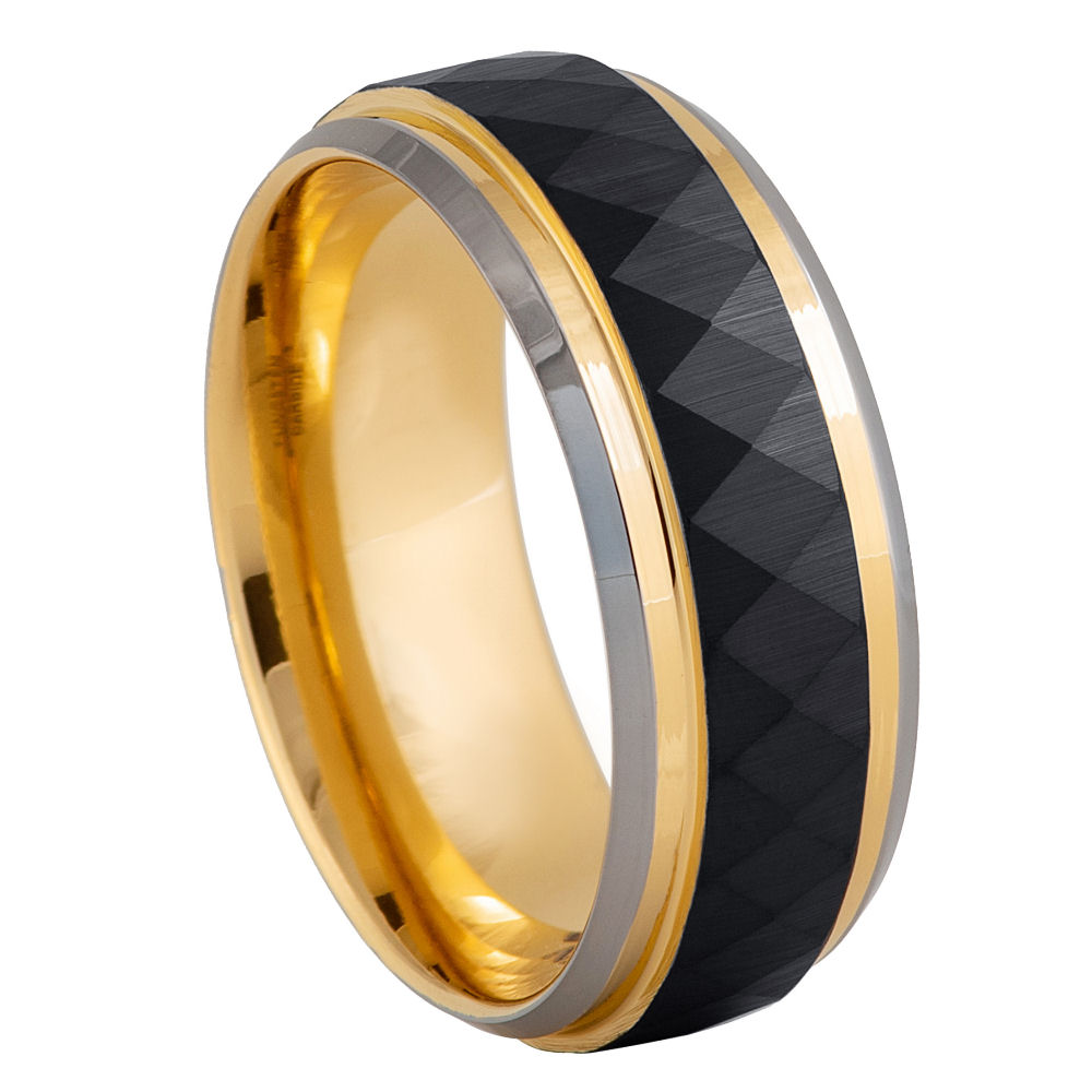 Diamond Faceted Black & Yellow IP Beveled – 8mm